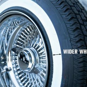 Shop true custom whitewall tires in sizes 13” to 28”, built by hand with real white rubber for a clean, factory look. Choose your stripe color — gold, red, blue, black, or custom — and get fast shipping, fitment verification, and a 1-year whitewall warranty.