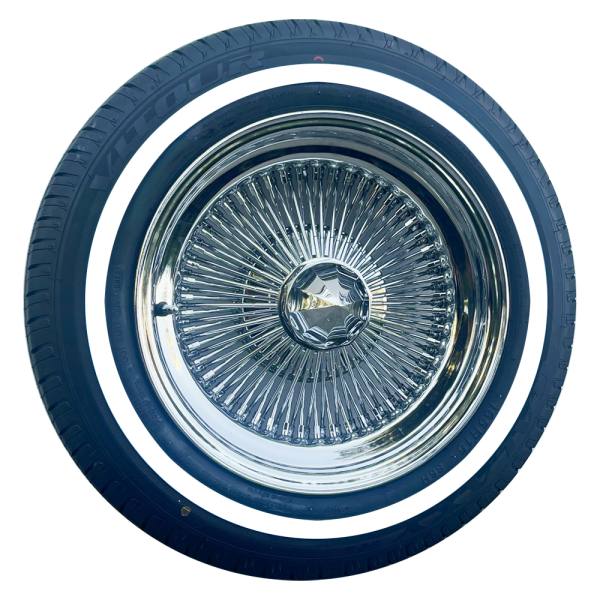 15X7 standard wire wheels 100 spoke + 165R15 Whitewall Tires – Set of 4