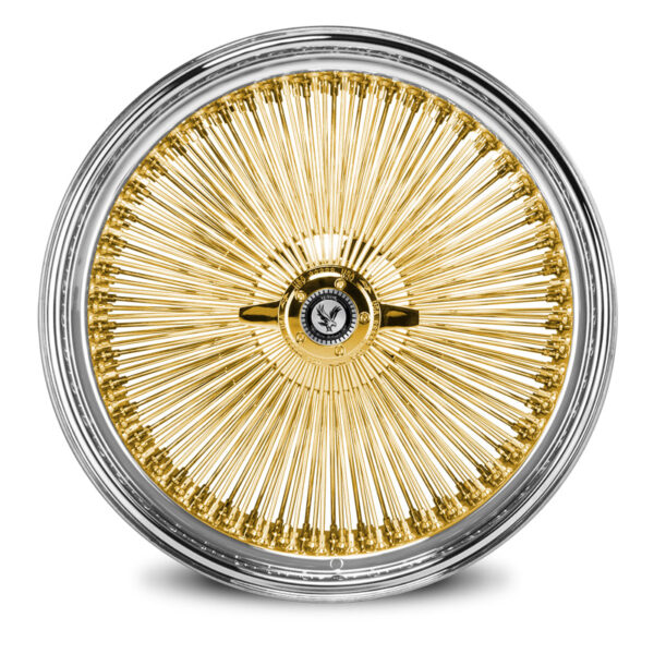 22×8” Luxor Wire Wheels – 150 Spoke, Straight Lace | Gold Center | Standard Offset | Set of 4