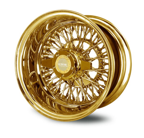 Yes, these are authentic Luxor brand wire wheels featuring a 72-spoke cross lace pattern with a full gold finish. They are built brand new with custom bolt pattern fitment.